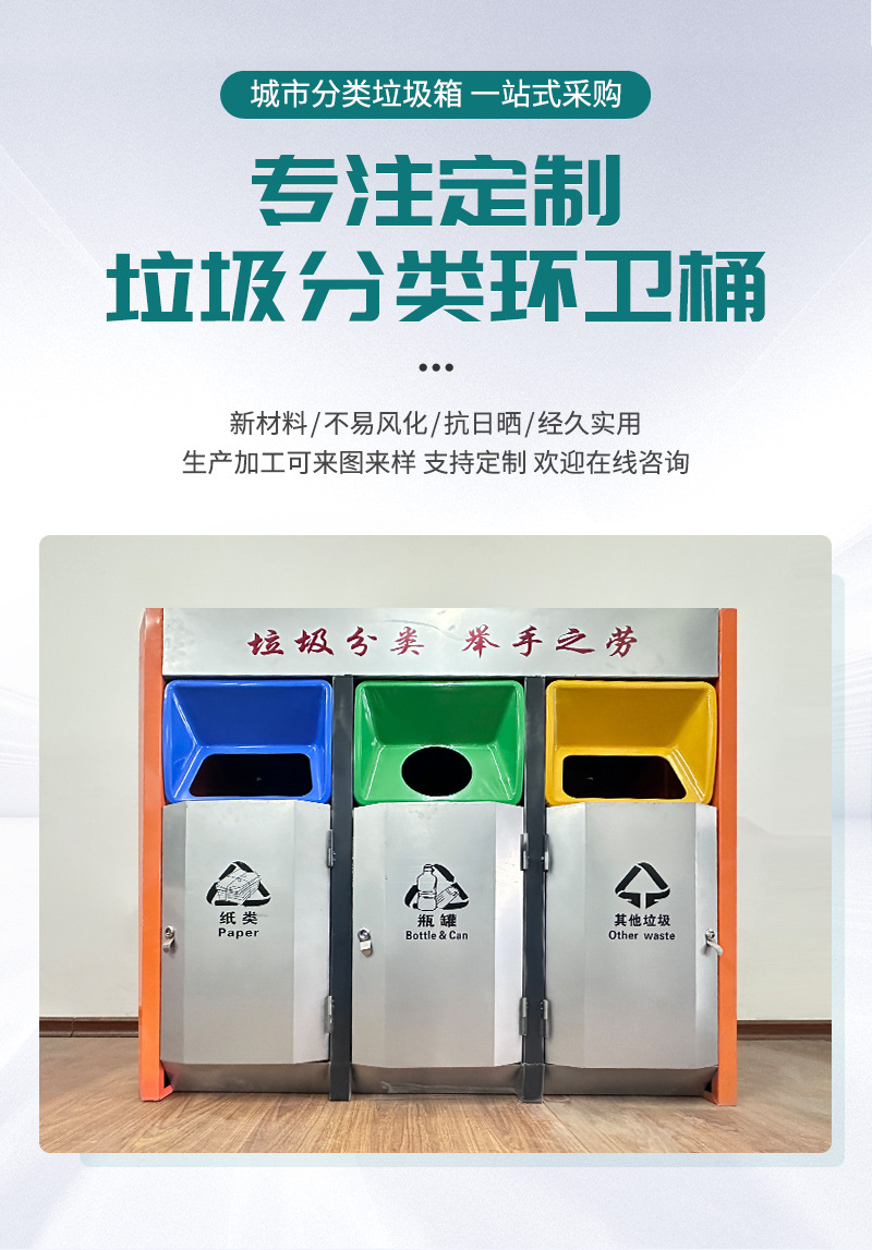 您當前的位置:首頁 / 產(chǎn)品中心 / 環(huán)衛(wèi)戶外垃圾箱/桶系列 / 戶外三分類不銹鋼垃圾箱/桶