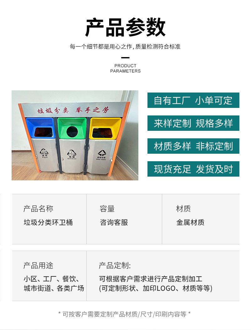 溫州東鴻金屬制造有限公司提供的戶外三分類不銹鋼垃圾箱為干濕分離環(huán)衛(wèi)垃圾箱/桶,可用于小區(qū)多分類垃圾箱/桶,并適用于小區(qū)、工廠、餐飲、城市街道、各類廣場、企業(yè)單位、花園、公園、學校、碼頭、風景旅游區(qū)等公共場所,可按客戶的需要定投產(chǎn)品尺寸、材質和印刷內容,咨詢電話0577-88321654。